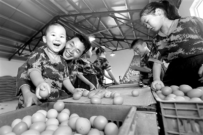 8月13日,江蘇省南京市溧水區(qū)白馬鎮(zhèn)的13名留守兒童,來到江蘇省公安邊防總隊綜合保障基地農(nóng)場,參加撿雞蛋、喂豬、摘葡萄等勞動。