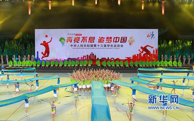 新華網(wǎng)杭州9月4日電 3日晚,第十三屆全國學生運動會在杭州黃龍體育館拉開帷幕。