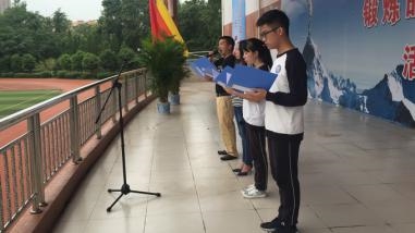 在曾校長給同學(xué)們發(fā)表鼓舞人心的講話后,曾校長向初、高三年級主管贈送戰(zhàn)旗,主管老師們接過戰(zhàn)旗揮動并喊出未來一年的拼博口號。全校師生們在現(xiàn)場燃爆的氛圍下,紛紛加入其中,喊出各班的班級口號,不僅喊出三原師生凝心聚力齊拼博的精神,更是在現(xiàn)場喊出滿滿的青春正能量。
