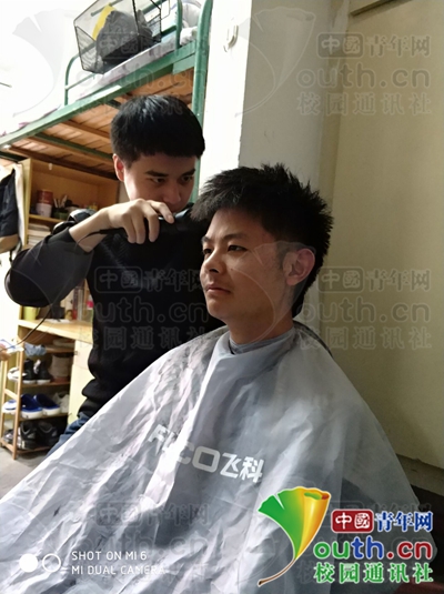 同學院學弟范龍濤接受采訪夸贊道:“學長手藝精湛,吹剪洗一氣呵成!”范龍濤就是網(wǎng)傳視頻上學長正在為其剪發(fā)的學弟,學長剪得還行,跟他預期的差不多,關(guān)鍵是免費。