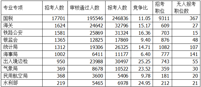 招錄人數(shù)前十系統(tǒng)報名情況一覽表