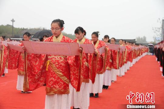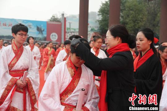 圖為加笄加冠。 漢城湖景區(qū) 攝