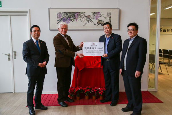 前德國(guó)國(guó)會(huì)議員、德國(guó)尤利希德意志科研中心主任、德中藝術(shù)設(shè)計(jì)交流協(xié)會(huì)高級(jí)顧問阿道夫?里茲,杜塞爾多夫原大區(qū)主席約爾根?比索,德國(guó)資深媒體專家約阿希姆?烏姆巴赫,德國(guó)知名設(shè)計(jì)、攝影和藝術(shù)策展人考琳娜?蓋爾茨等當(dāng)?shù)卣、文化名人出席了掛牌儀式。
