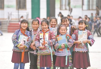 廣西融水縣白云鄉(xiāng)中心校紅瑤女童班的各族女童。(新華社發(fā))
