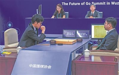 中國棋手柯潔九段和圍棋人工智能程序“阿爾法狗”對決。(新華社發(fā))