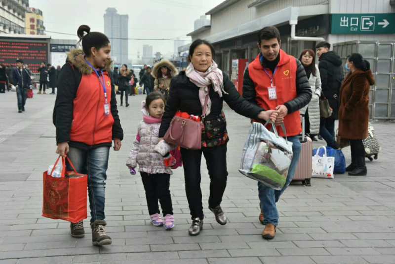 人民網(wǎng)北京2月8日電 日前,2018年春運大幕已正式拉開。在西安火車站,來自哈薩克斯坦、吉爾吉斯斯坦等國家的20余名西北工業(yè)大學(xué)外國留學(xué)生,正以春運服務(wù)志愿者的身份,為來往的旅客提供引導(dǎo)咨詢、重點幫扶、應(yīng)急救援等服務(wù)。