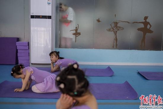 舞蹈課上,等候的家長從玻璃墻縫隙向教室內張望。