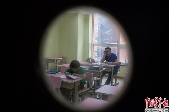 奧數(shù)一對一輔導班上,一位家長坐在教室的后排。