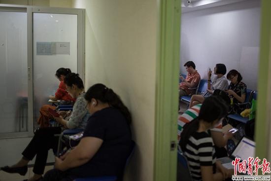 一家英語培訓機構,家長坐在20平方米的小房間里等孩子下課。