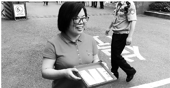 還有的家長(zhǎng)透著從容。一位媽媽穿著光鮮,一早就提著親手做的餃子、餛飩等在校門口。待她住校的兒子起床,從她手里拿走愛(ài)心便當(dāng)以后,媽媽就開始在校門口自拍了,并大氣接受各路媒體采訪,侃侃而談。然后大家還發(fā)現(xiàn)她腳下還有一大袋食物!斑@個(gè)是給我和我老公準(zhǔn)備的,我們一邊等一邊吃!”