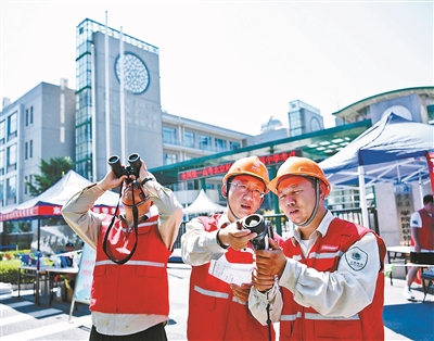 昨日一大早,考生還未抵達(dá)北京科技大學(xué)附屬中學(xué)考點(diǎn),國(guó)網(wǎng)北京海淀供電公司員工李揚(yáng)、朱勁東卻早已開始了線路巡視工作。他們拿著高倍望遠(yuǎn)鏡、測(cè)溫儀等設(shè)備對(duì)10千伏高考供電重點(diǎn)線路進(jìn)行測(cè)溫、測(cè)負(fù)荷,不放過一絲一毫的異常。