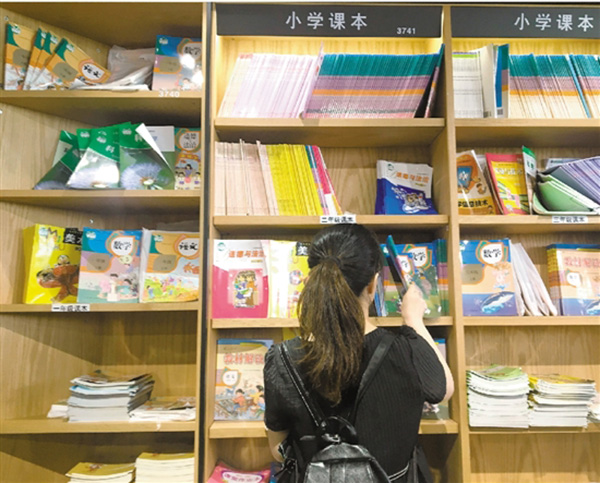 16日下午,小貝媽帶著女兒快步走進(jìn)杭州慶春路購書中心,來不及擦擦汗水,喘幾口氣,她們就根據(jù)提示直奔位于三樓的小學(xué)教材書架。她已經(jīng)在解放路書店逛了一上午,但還是沒找全孩子下學(xué)期要用的課本教材,只好又趕到慶春路購書中心碰碰運(yùn)氣。