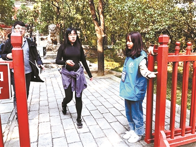大學(xué)生志愿者在香山公園疏導(dǎo)游客,維護(hù)游園秩序供圖/香山公園管理處