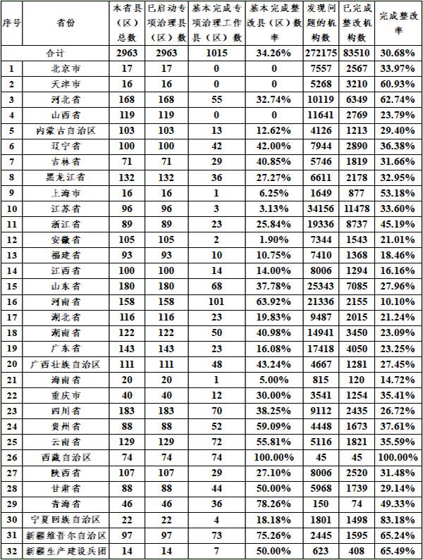 日前,教育部辦公廳印發(fā)《關于全國校外培訓機構專項治理行動整改工作進展情況的通報》,截至2018年10月15日,全國共摸排校外培訓機構400532所,存在問題機構272175所,現(xiàn)已完成整改83510所,完成整改率30.68% 。黑龍江省發(fā)現(xiàn)問題的機構數(shù)有6611所,已整改2178所,完成整改率達32.95%。