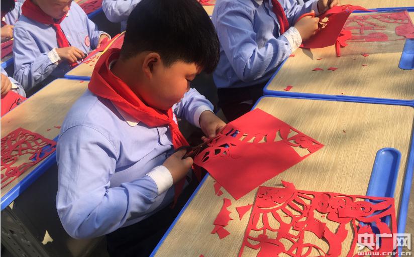 揚(yáng)中市豐裕中心小學(xué)剪紙課堂(記者 安紅麗 攝)