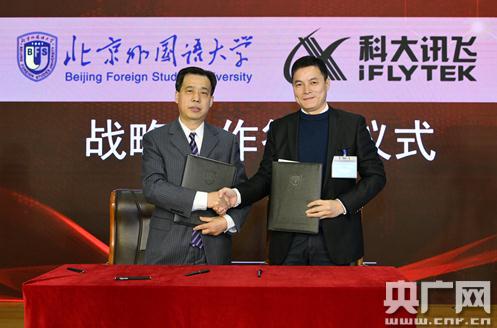 成立大會上,北京外國語大學(xué)與華為技術(shù)有限公司、科大訊飛股份有限公司舉行戰(zhàn)略合作伙伴協(xié)議簽約儀式。孫有中分別與華為技術(shù)有限公司北京代表處總經(jīng)理劉陽,科大訊飛股份有限公司執(zhí)行總裁吳曉如簽署合作協(xié)議。