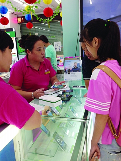 家長們帶著孩子在選購手機。季娜娜 攝