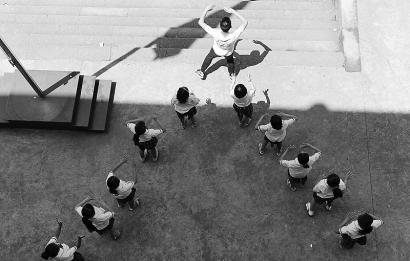 大學生帶領留守兒童排練節(jié)目。