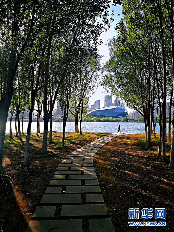 初夏的沈陽市陽光和煦 ,氣候宜人,位于沈陽市渾河畔的奧林匹克公園風景如畫,每天都吸引大量市民前來賞景、晨練、垂釣,這里已成為城市中一道靚麗的風景線。圖為市民清晨在奧林匹克公園中散步。新華網(wǎng) 姜冰攝 -