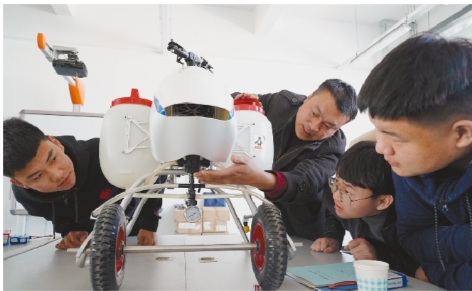 3月18日,遼寧農(nóng)業(yè)職業(yè)技術(shù)學院農(nóng)業(yè)裝備工程系2018級無人機班的學生正在進行無人機噴灑農(nóng)藥操作的學習。近年來,隨著我國農(nóng)業(yè)現(xiàn)代化水平的提高,植保無人機市場快速發(fā)展,這讓植保無人機“飛手”成為熱門職業(yè),“科班”畢業(yè)的“飛手”備受市場青睞。本報記者周福剛 攝