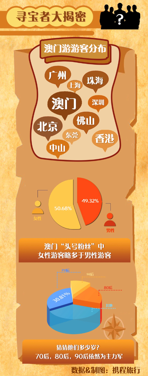 哪些游客pick澳門游?從數(shù)據(jù)中不難看出,廣州、珠海、澳門、深圳、佛山、上海、北京、中山、東莞、香港等地的游客榜上有名。其中,女性游客是澳門游的狂熱粉絲,占比50.68%。男性游客占比49.32%。時(shí)尚活力的澳門也吸引著越來(lái)越多年輕人的目光。游客年齡段分布在70后、80后、90后。其中70后占比30.81%,80后占比28.85,90后占比23.67%。
