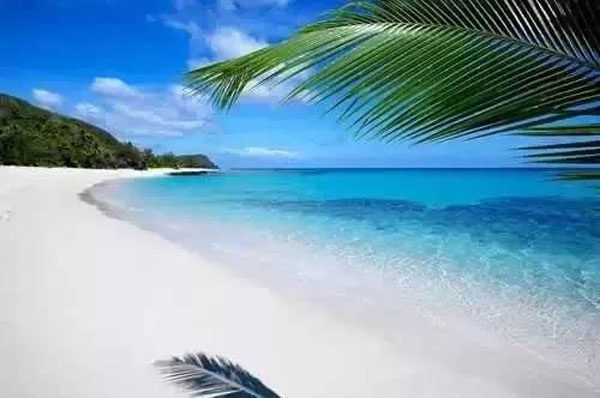 白色沙灘在陽光下散發(fā)著耀眼的光,一望無際碧藍的海水,藍天白云的相互呼應(yīng),這樣的美景足以美至心靈。