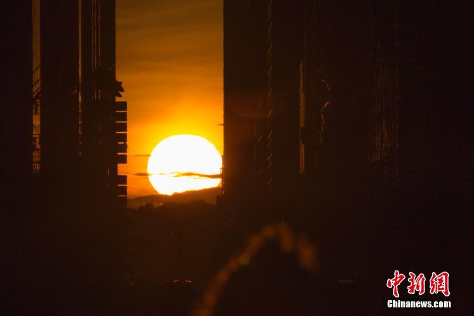 當?shù)貢r間7月11日傍晚,在美國紐約曼哈頓,大批民眾聚集拍攝“曼哈頓懸日”景觀。曼哈頓懸日是指在美國紐約曼哈頓出現(xiàn)的自然現(xiàn)象,由于曼哈頓街道大多呈棋盤式布局且高樓密集,日落時陽光灑滿曼哈頓的所有東西向街道,該現(xiàn)象每年只出現(xiàn)兩次。