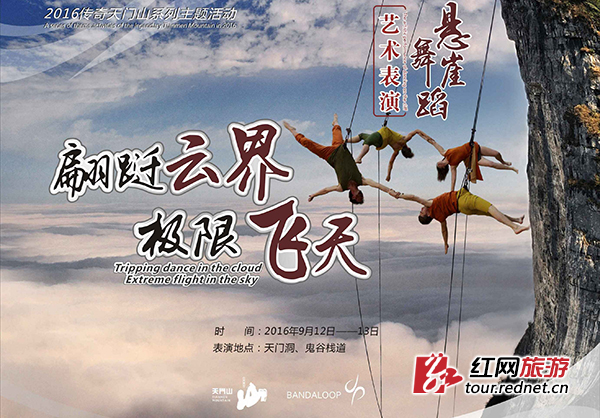天門(mén)山懸崖舞蹈秀主題宣傳圖。
