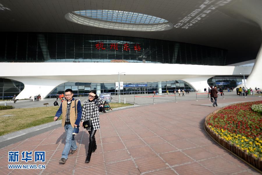 2月7日,兩位旅客穿過杭州東站站前廣場。往年熙熙攘攘的站前廣場平靜了許多。整潔的候車廳、人流稀松的售票廳、有序等待的旅客——這是記者在杭州東站看到的情景。今年春運,在浙江杭州東站,你擁我擠、人滿為患的情景不見了,旅客進站、候車、乘車更加順暢。上海鐵路局稱,高鐵在春運中的客發(fā)比重增加,轉(zhuǎn)運率也大大提高,“改變了傳統(tǒng)的春運模式”。據(jù)悉,杭州鐵路部門節(jié)前將增開60多對臨客,其中高鐵動車數(shù)大大增加,客發(fā)比重達60%左右。特別是去年12月10日杭長高鐵的開通打通了長三角至云、貴、川方向的運輸瓶頸,使浙江“民工流”的主要目的地——云貴川渝等方向運力大大緩解。今年春運鐵路網(wǎng)絡售票比例近80%,旅客購票乘車更加方便。此外,羊年春節(jié)來得較晚,春運客流也呈現(xiàn)分散特點。諸多因素使杭州今年的春運變得不再喧鬧。