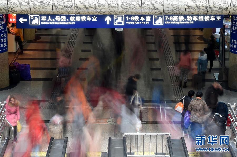 2月11日,旅客們在鄭州火車站準備進站上車。記者從交通部門獲悉,2015年春運自4日開啟以來已到一周,截至10日,全國道路運輸旅客突破4.2億人次,鐵路約4600萬人次,全國公路、鐵路、民航、水運運輸安全平穩(wěn)有序。