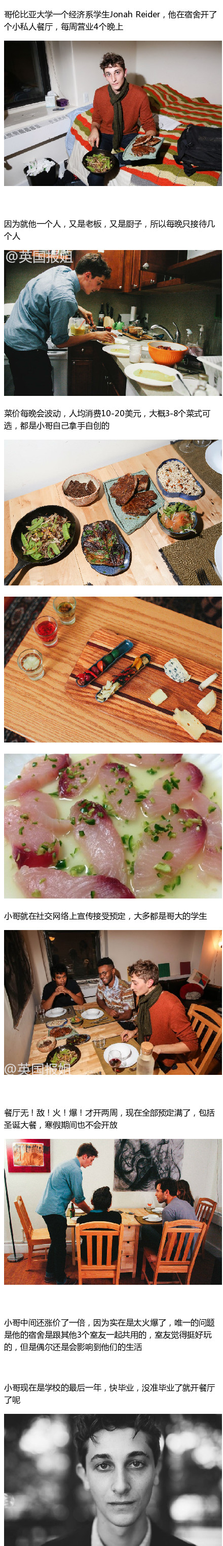 哥大一個(gè)學(xué)生在學(xué)校宿舍里開(kāi)了一個(gè)小餐廳,生意特別火爆,現(xiàn)在連圣誕檔都預(yù)定滿了。