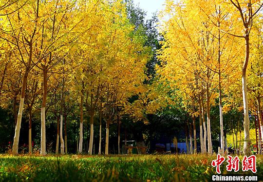 10月15日,進入秋季以來,在新疆托克遜縣的公園里,園內的樹林已經(jīng)褪去綠色,披上了黃色外衣,在陽光的照射下尤為光彩奪目,秋景迷人如畫。每年秋天,隨意走在托克遜的大街小巷、鄉(xiāng)村小道,隨處可欣賞到托克遜秋天的美麗景色。