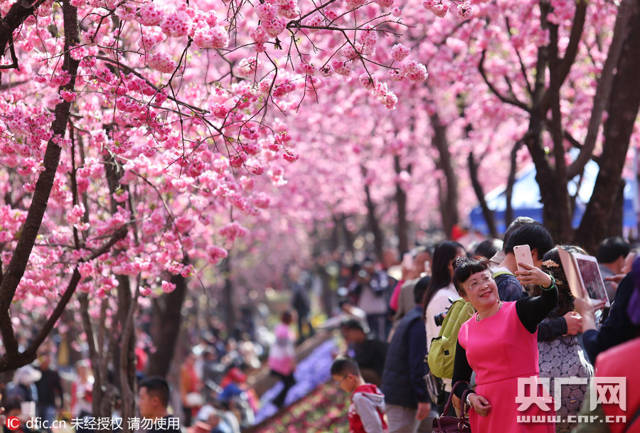 2016年3月13日,云南昆明,昆明圓通動物園,樹千株櫻花和海棠進(jìn)入盛花期,整個公園成了花海,“圓通櫻潮”的盛況讓游人流連忘返,陶醉其中。