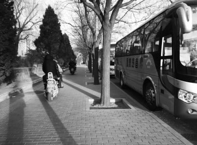 近日,讀者丁先生致電本報,在朝陽區(qū)地鐵四惠東站A口的馬路旁,每天有多輛大型旅游客車停在京通快速路輔路的非機動車道內,接送游客,影響了非機動車的通行,給騎車人帶來麻煩。他希望管理部門盡快來規(guī)范這些旅游車停車,保證非機動車正常通行。