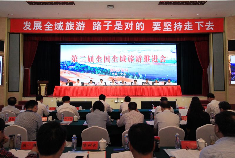 9月10日,第二屆全國全域旅游推進會在寧夏中衛(wèi)市舉行。國家旅游局局長李金早、寧夏回族自治區(qū)書記李建華出席會議并講話。河北省委副書記、省旅游工作領(lǐng)導(dǎo)小組組長趙勇、浙江省副省長梁黎明、四川省副省長楊洪波、貴州省副省長黃家培、中國旅游集團董事長張學(xué)武等介紹經(jīng)驗,國家旅游局副局長李世宏主持會議。
