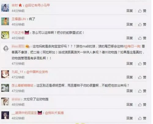 很多網(wǎng)友對類似阿拉斯加犬這只動物的安全表示超高度的關注,希望它能得到很好的護理和保護,不要再受傷害,另外,大家都在討論這只動物,是狼還是狗狗呢?動植物園狼與狗混養(yǎng)?并對動植物園的管理提出了質疑。