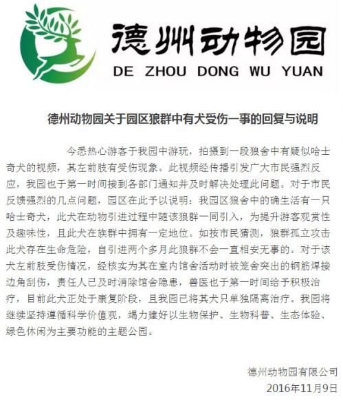 德州動物園方面對此事進行了說明和答復。