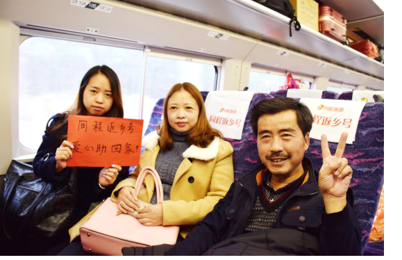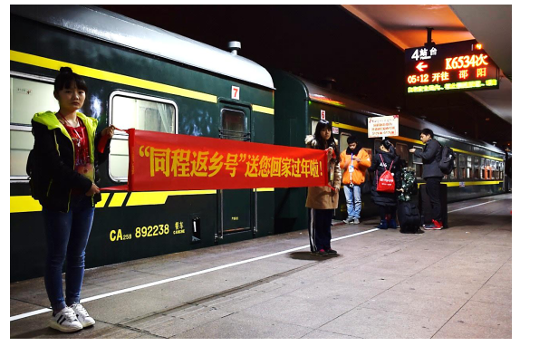 今年春運(yùn)期間,同程火車票聯(lián)合各方,承包了廣州南→貴陽(yáng)北、廣州→邵陽(yáng)兩趟列車將在穗務(wù)工人員、貧困大學(xué)生等漂泊在外的2000余名游子免費(fèi)送回家鄉(xiāng)。1月15日16點(diǎn)48分,廣州至邵陽(yáng)的“同程返鄉(xiāng)號(hào)”愛心專列已經(jīng)成功抵達(dá)終點(diǎn)邵陽(yáng)站。