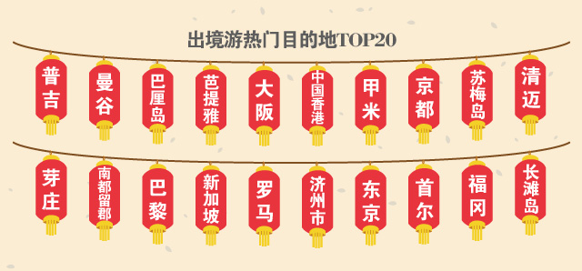 排名前20位的出境游目的地城市分別為普吉、曼谷、巴厘島、芭提雅、大阪、中國香港、甲米、京都、蘇梅島、清邁、芽莊、南都留郡、巴黎、新加坡市、羅馬、濟州市、東京、首爾、福岡、長灘島。