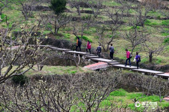 3月19日,喜歡踏青的游客在舟山市定海區(qū)金塘李子苑內(nèi)賞花拍照。由于氣候影響,金塘島上的三千多畝李花仍在含苞欲放中,但賞花游客已經(jīng)慕名而至。(浙江在線通訊員 姚峰 攝)