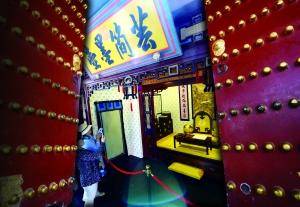 北京晨報(bào)記者注意到,景區(qū)內(nèi)還有不少屬于“仿膳”的物件。步入漪瀾堂,抬頭可見巨大的金碧輝煌的“二龍戲珠”藻井。據(jù)工作人員介紹,這里曾是仿膳的營(yíng)業(yè)大廳,可以放下14張大桌,每桌坐10人。“這個(gè)藻井就是后建的,包括這些鑲嵌在柱子上的盤金龍、貼在房頂四周的‘清宮舊畫’都是后建的、后貼的,今后全部都要拆掉,恢復(fù)漪瀾堂最早的樣貌!惫ぷ魅藛T如是說。
