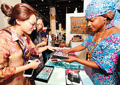 5月26日,第九屆中國國際旅游商品博覽會在浙江義烏國際博覽中心開幕。為期4天的展會以“旅游新品·智行天下”為主題,設標準展位2000余個,吸引境內(nèi)外1300余家企業(yè)參展,集中展示旅游裝備用品、戶外休閑用品、旅游紀念品等。圖為參展客商選購非洲綠松石飾品。