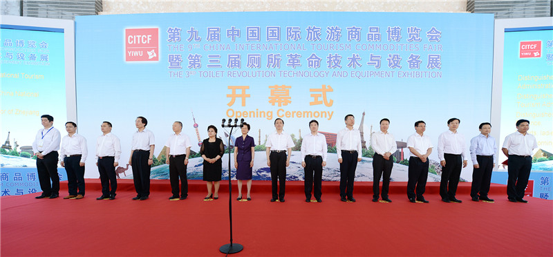 央廣網(wǎng)義烏5月26日消息(記者陳譞) 5月26日,由國(guó)家旅游局和浙江省人民政府共同主辦的第九屆中國(guó)國(guó)際旅游商品博覽會(huì)暨第三屆全國(guó)廁所革命技術(shù)與設(shè)備展在義烏國(guó)際博覽中心舉行。國(guó)家旅游局局長(zhǎng)李金早、副局長(zhǎng)李世宏,浙江省副省長(zhǎng)梁黎明,山西省副省長(zhǎng)張復(fù)明,內(nèi)蒙古自治區(qū)副主席艾麗華,寧夏回族自治區(qū)副主席王和山,中國(guó)工程院院士侯立安等出席開(kāi)幕式。