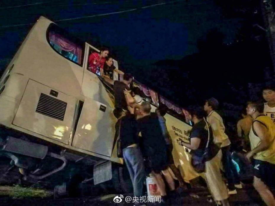 泰國一載中國游客大巴翻車 致5人受傷,