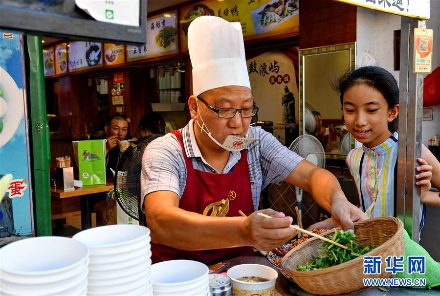 一名小游客在鼓浪嶼街邊商鋪觀看廈門小吃制作(8月29日攝)。被列入世界文化遺產(chǎn)名錄的廈門鼓浪嶼以其風(fēng)格迥異、中西合璧的建筑,富有特色的商鋪吸引了四面八方的游客。 新華社記者 張國俊 攝 -