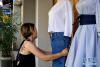 服裝銷售員在鼓浪嶼街邊商鋪整理服飾(8月29日攝)。被列入世界文化遺產(chǎn)名錄的廈門鼓浪嶼以其風(fēng)格迥異、中西合璧的建筑,富有特色的商鋪吸引了四面八方的游客。 新華社記者 張國俊 攝 -