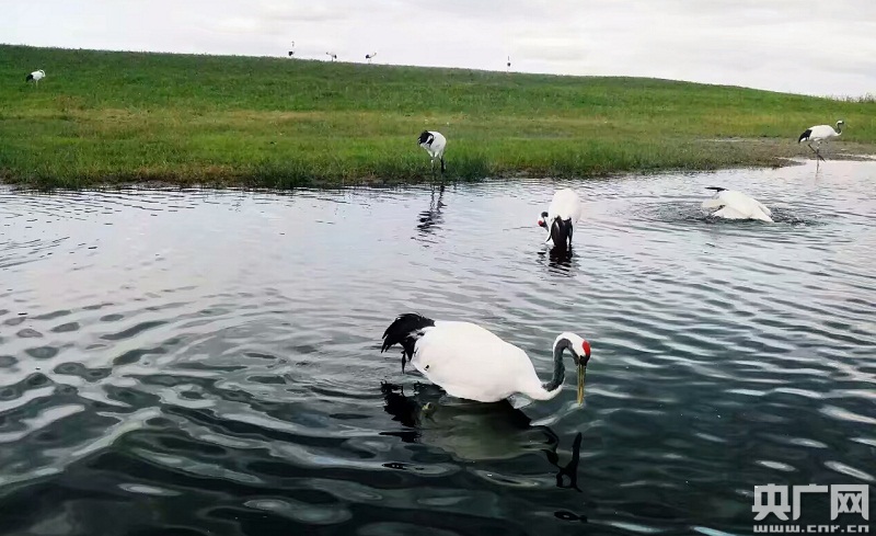 央廣網(wǎng)北京9月1日消息 (記者王啟慧)黑龍江省齊齊哈爾市扎龍自然保護(hù)區(qū)為國家級自然保護(hù)區(qū),1992年被列入國際重要濕地名錄。保護(hù)區(qū)蘆葦沼澤廣袤遼遠(yuǎn),湖泊星羅棋布,葦草肥美,魚蝦豐盛,環(huán)境幽靜,風(fēng)光綺麗,是鳥類繁衍的天堂,保護(hù)區(qū)棲居鳥類150多種,其中鶴的種類多,全世界鶴類有15種,我國分布9種,扎龍自然保護(hù)區(qū)有6種,其中野生丹頂鶴種群數(shù)量達(dá)到近200只左右,人工繁育種群430多只。圖片/王啟慧