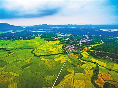 日前,在江西省上饒市鉛山縣河口鎮(zhèn)玉石村,金黃色的稻田與線條優(yōu)美的田埂構(gòu)成了美麗畫卷。立秋以后,鉛山稻子進入成熟期,從空中俯瞰,色彩斑斕的稻田,猶如秋天繪制的“調(diào)色板”,美不勝收。