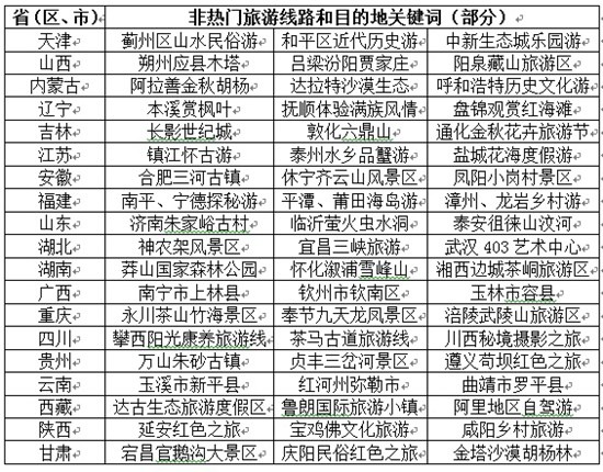 《假日旅游指南》中提示游客,多數(shù)國內(nèi)熱門旅游目的地假日旅游接待人次呈現(xiàn)出“中間高,兩頭低”的趨勢(shì),假日前兩日或者最后兩日安排一次短途旅游將使旅途擁堵有所緩解,如前往預(yù)計(jì)較熱門的地區(qū),可安排假日前提前一天出行。同時(shí),臨近假日,各地交通部門將發(fā)布路網(wǎng)提示,預(yù)測(cè)、監(jiān)測(cè)公路擁堵情況,廣大自駕游客可予以關(guān)注,科學(xué)選擇行車路線。長途出行,假日前幾天前往較大城市、后幾天前往中小城市的鐵路、民航線路相對(duì)寬松,可避開客運(yùn)高峰。此外,一些新興的旅游線路和目的地未受到較多關(guān)注,部分熱門的旅游線路和目的地進(jìn)入相對(duì)淡季,在假日期間選擇前往將大大提升旅游的品質(zhì),豐富旅行的內(nèi)涵。為方便廣大游客,部分省(市、區(qū))旅游主管部門根據(jù)歷年同期假日旅游情況,整理了一份非熱門旅游線路和目的地關(guān)鍵詞,以供參考。