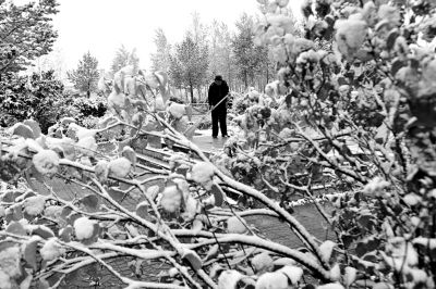 內(nèi)蒙古甘肅等地出現(xiàn)降雪,10月9日,在呼和浩特鐵路局集寧機務段整備場,風雪中的列車準備駛出車站。當日,受較強冷空氣影響,內(nèi)蒙古、甘肅部分地區(qū)出現(xiàn)降雪。新華社發(fā)(唐哲 攝) 10月9日,呼和浩特鐵路局集寧機務段工作人員冒雪檢修設備。